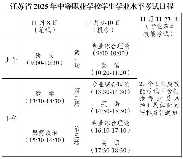 11月4日16时起,考生可登录江苏省教育考试院官网(www.jseea.cn)点击首页“江苏省2025年中等职业学校学生学业水平考试准考证打印”图片链接自行下载并打印准考证,也可到指定报名点打印并领取准考证。