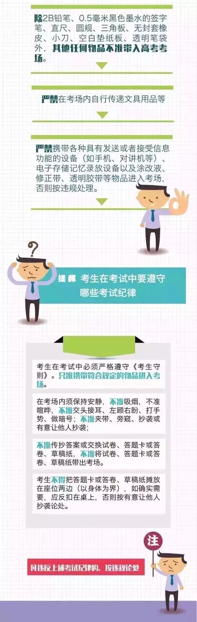 市招办提醒广大考生,要按照考试时间提前到达考点,不要携带手机、手表等禁带物品,做到诚信考试。考生必须同时出具准考证和居民身份证才能参加考试,如考生居民身份证遗失,则必须办理临时身份证或公安部门出具的带照片的身份证明方能参加考试。每场考试考生均不得提前交卷离开考场。考生学业水平测试必修科目考试(含信息技术考试)成绩将于4月中旬发布。