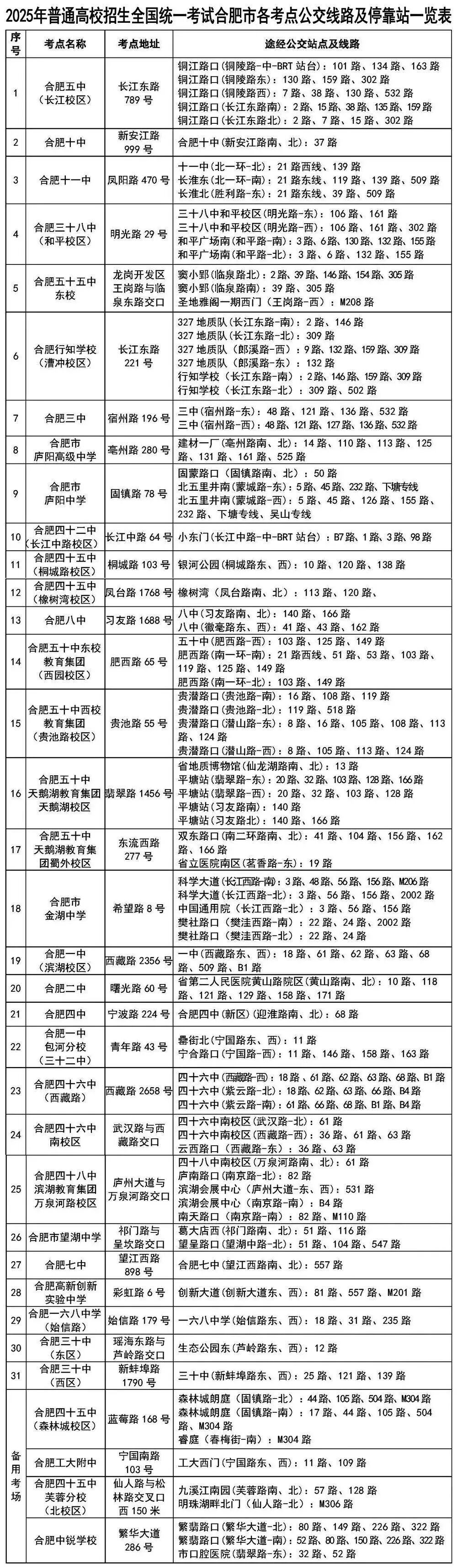 2025年普通高等学校招生全国统一考试将于6月7日至9日举行。据合肥公交集团消息,今年高考期间,高考考生可持本人准考证,免费乘坐公交集团全部319条常规公交线路公交车,同时加密高考重点时段的公交车发车频次,缩短发车间隔,确保高考考生出行。