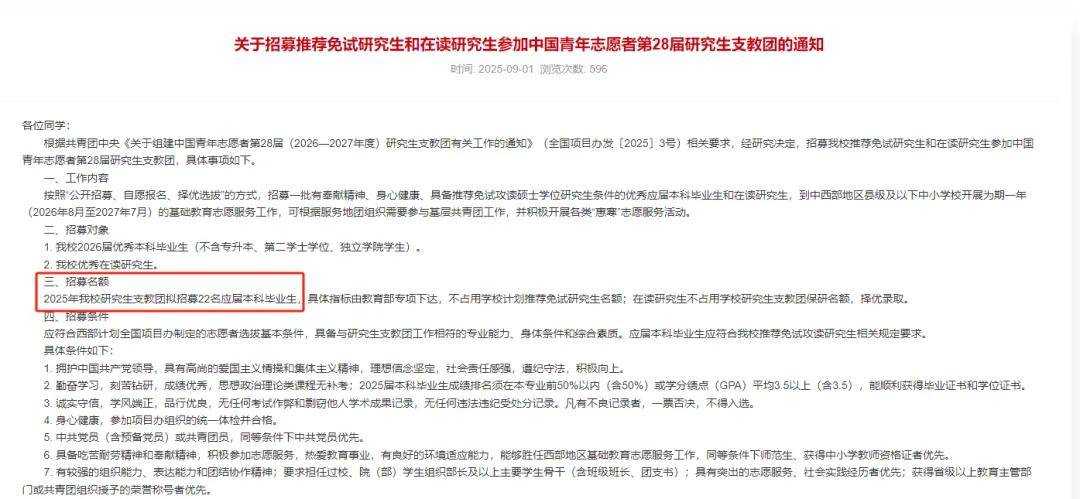 注:根据苏州大学教育学院官网发布,2025年研究生支教团拟招募22名应届本科毕业生。