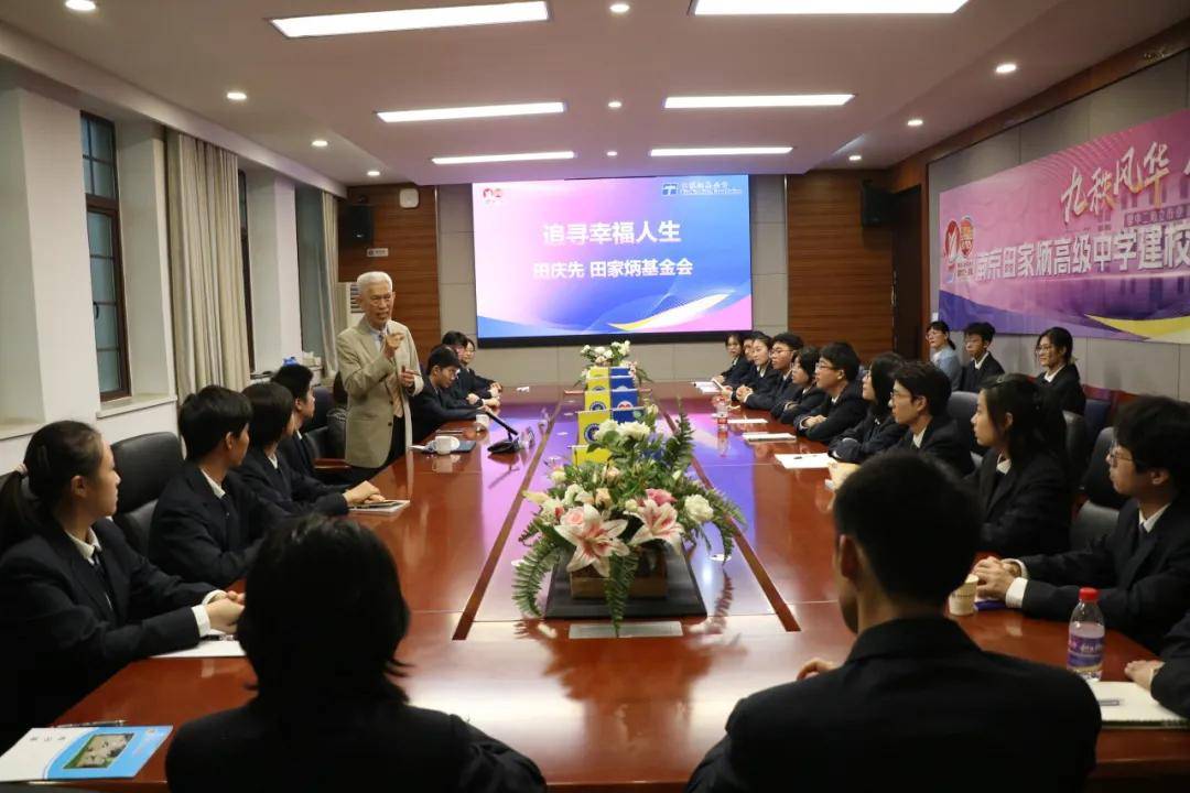 多年来,田庆先先生追随父亲脚步,多次亲赴南京田高中,持续关注并支持学校发展。他希望同学们坚持“自强不息,己立立人”,从细微的慈善做起,关心关爱他人。