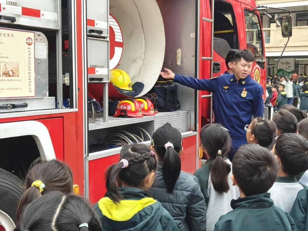 演习结束后,同学们还近距离参观了消防车,在消防员叔叔的介绍下对消防车的构造和设备有了进一步的了解。