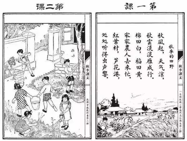 先让大家看几张民国时期小学生看的课本,看他们是怎么描写秋天的 ▼