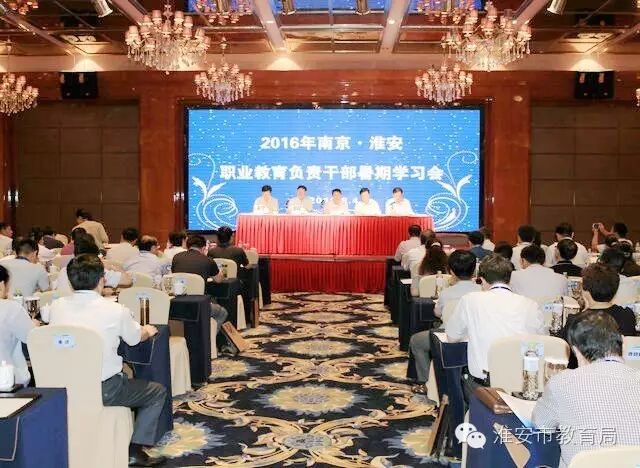 ?8月4日到5日,南京市教育局、淮安市教育局共同举办了宁淮两地职业教育合作签约仪式暨负责干部暑期学习会。南京、淮安教育局职教(社)处、教研室领导,宁淮两地各区县教育局分管局长、