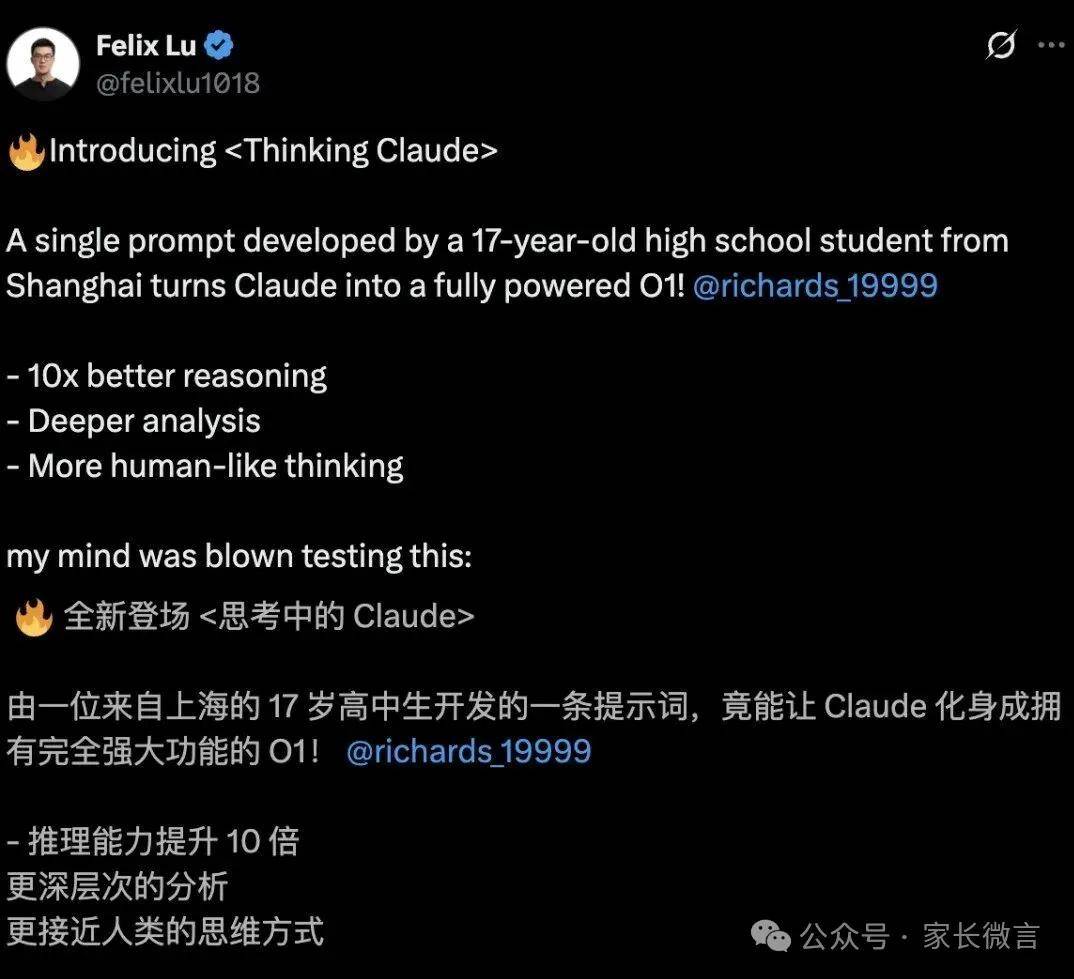 去年,涂津豪还通过神级提示词工程把Claude 3.5改造成推理模式。