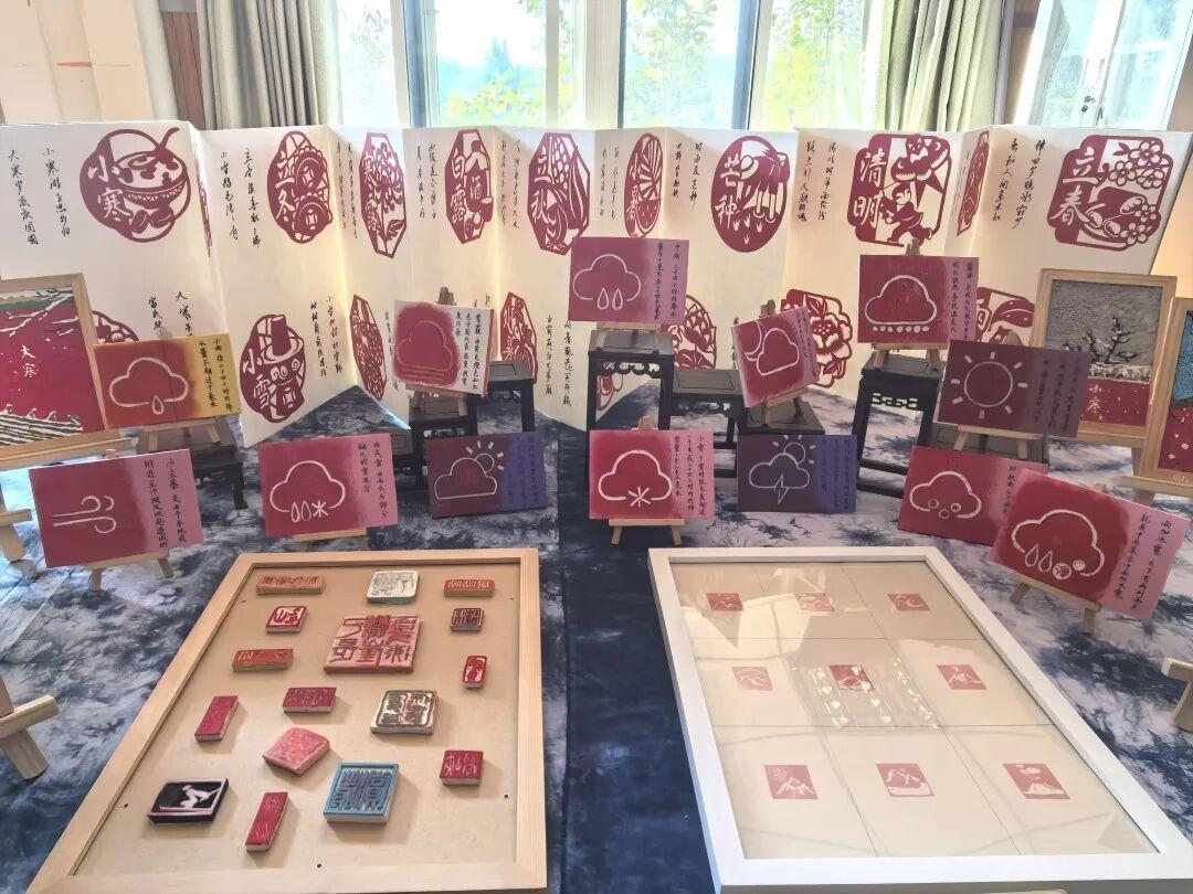 展区内,同学们创作的气象主题篆刻作品格外引人注目,一方方印章上,“晴”“雨”“雷”“电” 等气象符号经同学们的巧手雕琢,线条流畅、布局精巧,将传统篆刻艺术与气象科学知识巧妙融合,每一方印章都承载着学生对气象现象的独特理解。