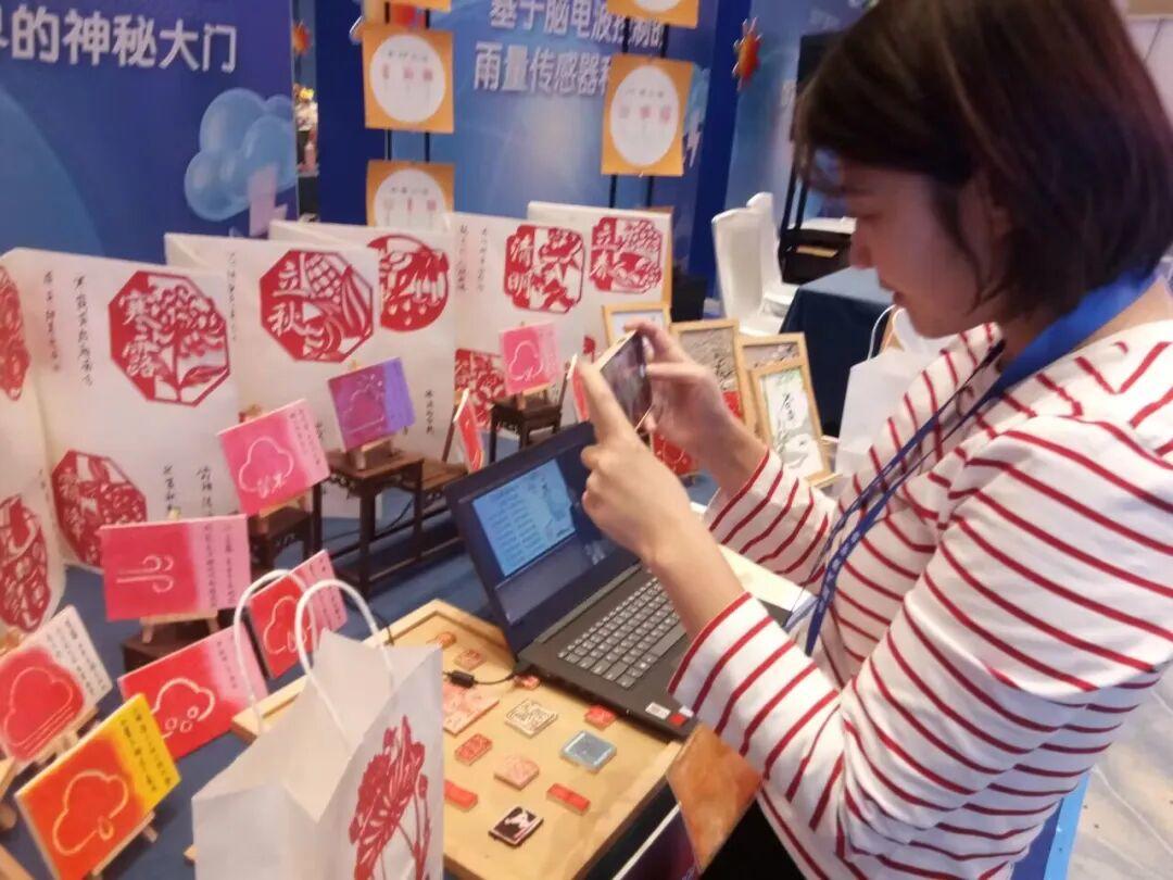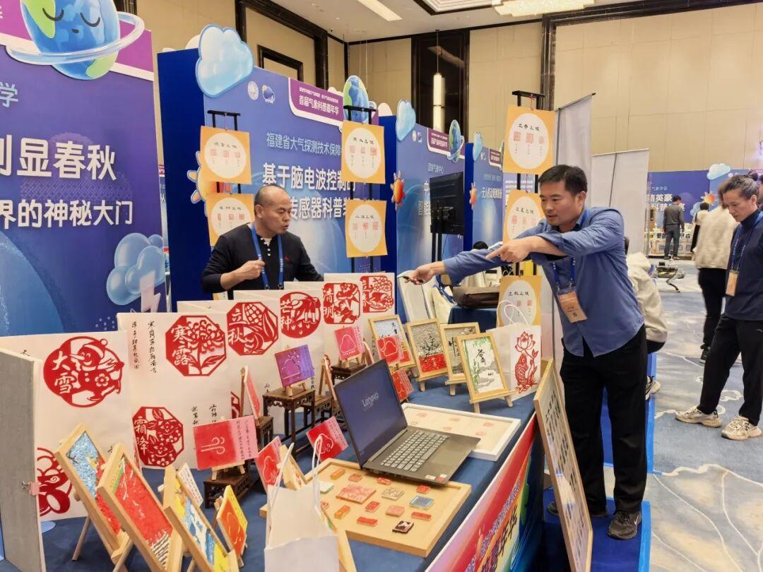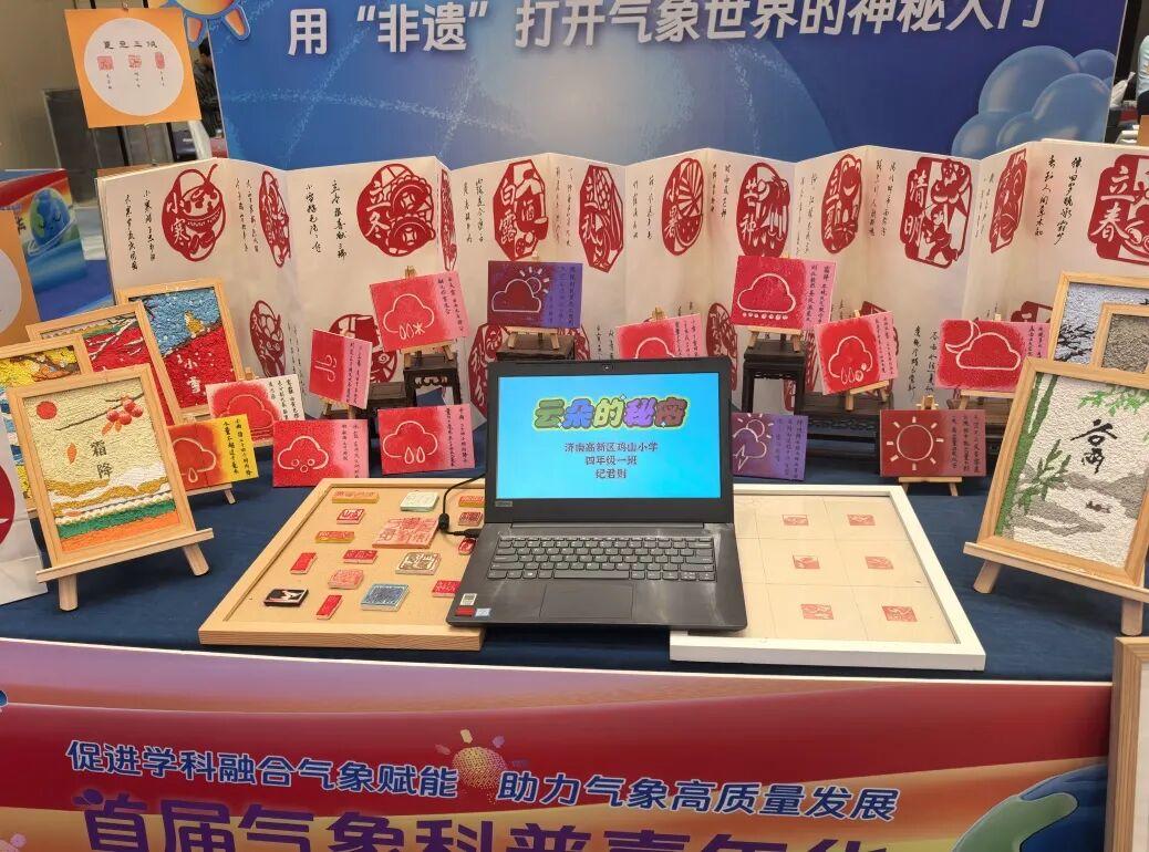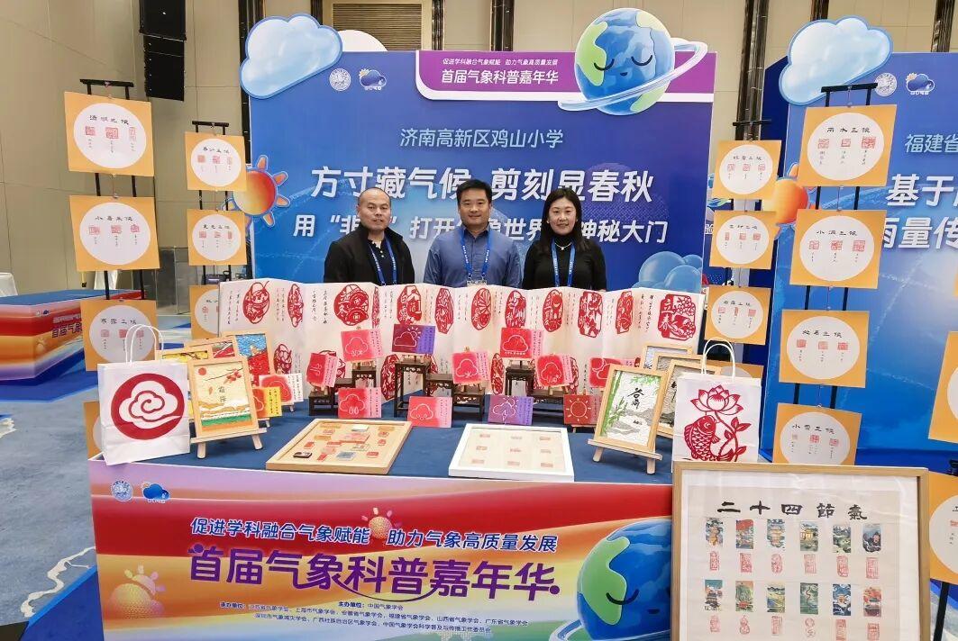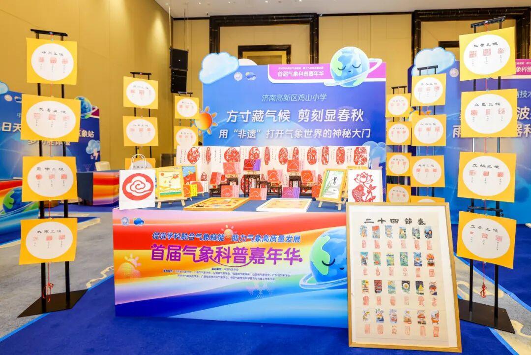气象科普嘉年华启幕,济南鸡山小学唯一展出,以篆刻、剪纸、气象播报展现气象知识。