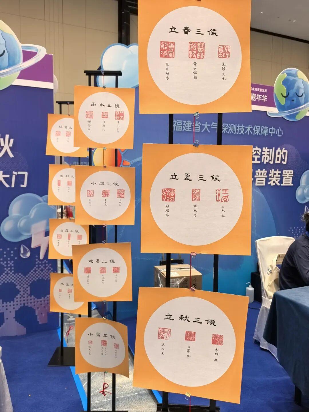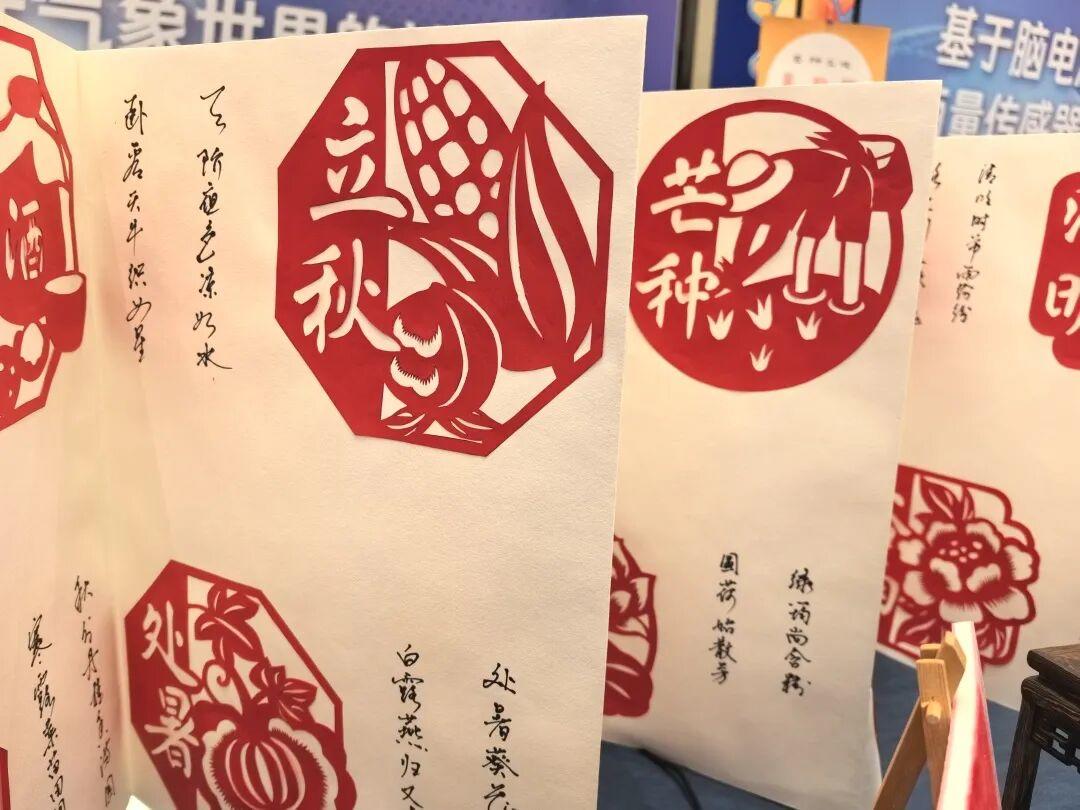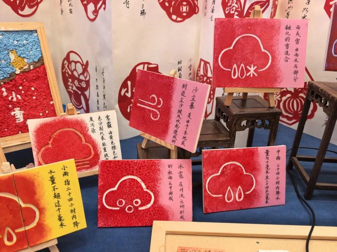 旁边陈列的气象剪纸作品同样令人赞叹,同学们用剪刀将云、彩虹、风向标等气象元素生动呈现,二十四节气彰显着学生红纸翻飞间的剪刻功力,既有传统剪纸的细腻灵动,又传递出丰富的气象科普知识,让现场观众感受到传统艺术与科学知识碰撞出的独特魅力。