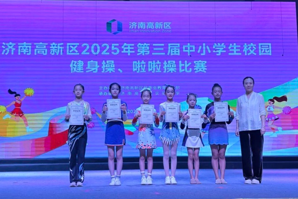 济南高新区丰奥嘉园小学健美操队获一等奖,靠学校支持、教练专业指导、队员努力和家长助力。学校提供场地护具,教练打磨细节;队员刻苦训练,家长配合。学校将优化计划再争佳绩。