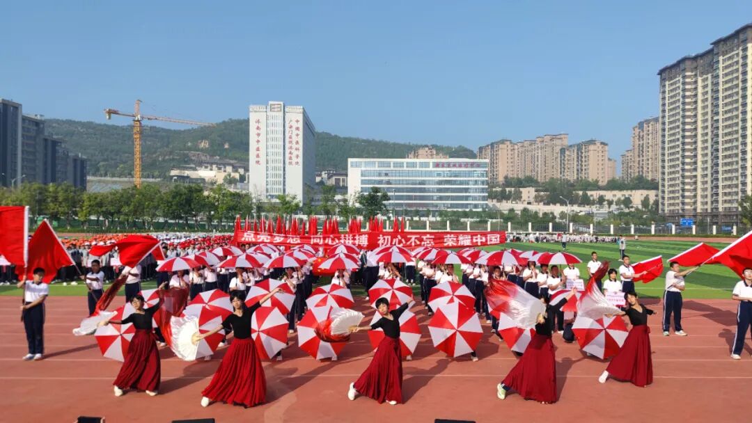 伯乐实验学校举行第八届田径运动会,千余名师生与家长志愿者齐聚一堂。开幕式上,方阵步伐整齐、口号嘹亮,创意表演精彩纷呈:有的通过“时光博物馆”追忆家国情怀,有的放飞气球寄托美好祝愿。全体师生在拼搏与欢笑中,用青春与热情表达对祖国的深情热爱。