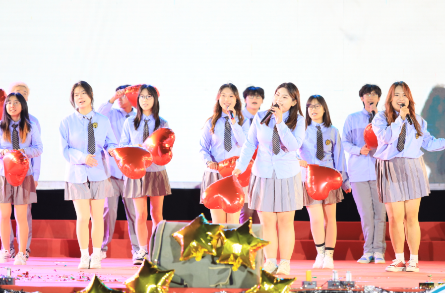 “新穗·交汇”篇章中,经济与管理学院《加油amigo》、校礼仪队T台《青yang》、啦啦操表演《跃然新程》调动起全场动感的节奏,展现了当代青年的自信和活力;大一新生的古筝表演《战台风》,奏响国风民乐的青春律动,让观众尽情沉浸在高雅艺术的魅力中;经济与管理学院周笑笑等师生共同演绎歌伴舞《逆光》中,号召海院青年人不断追梦,以青春之名,励青春之志,争当时代先锋!