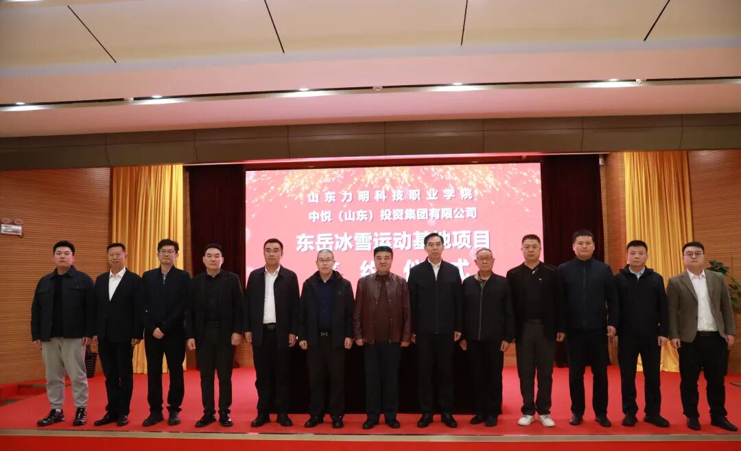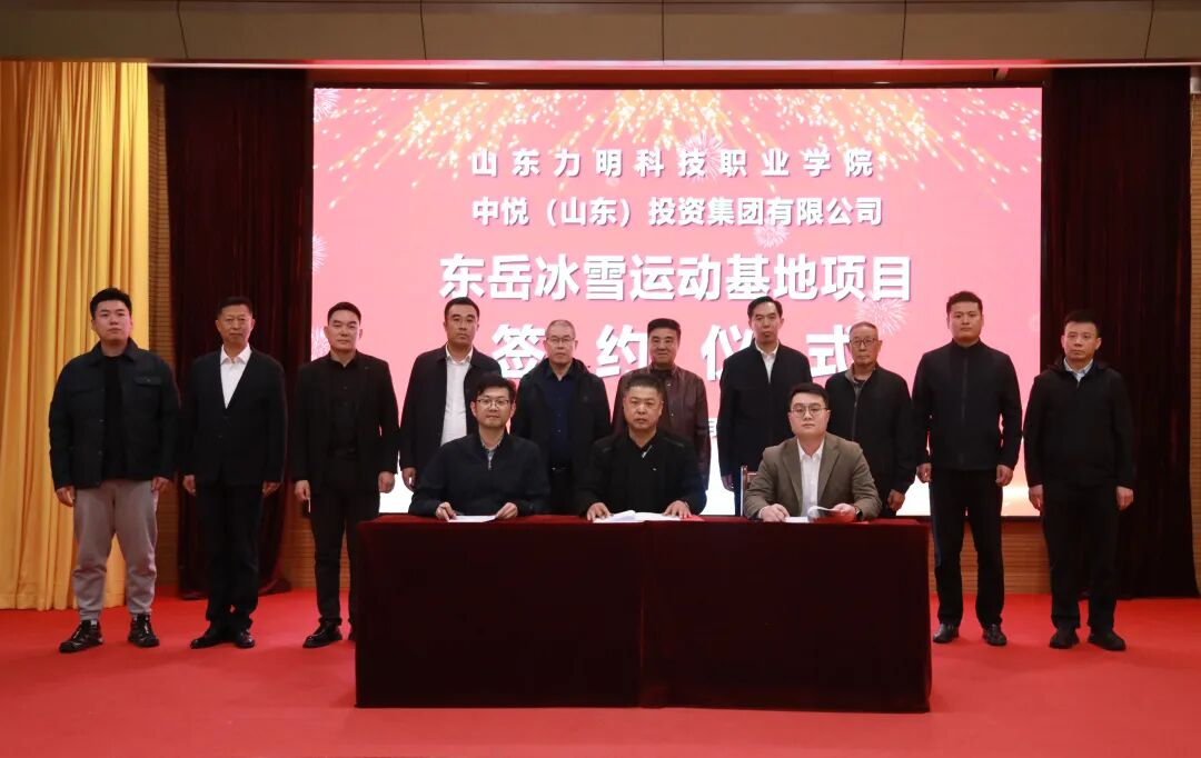 力明学院与中悦投资签约东岳冰雪运动基地,总投资10亿元,承载体教融合,助山东冰雪产业升级。
